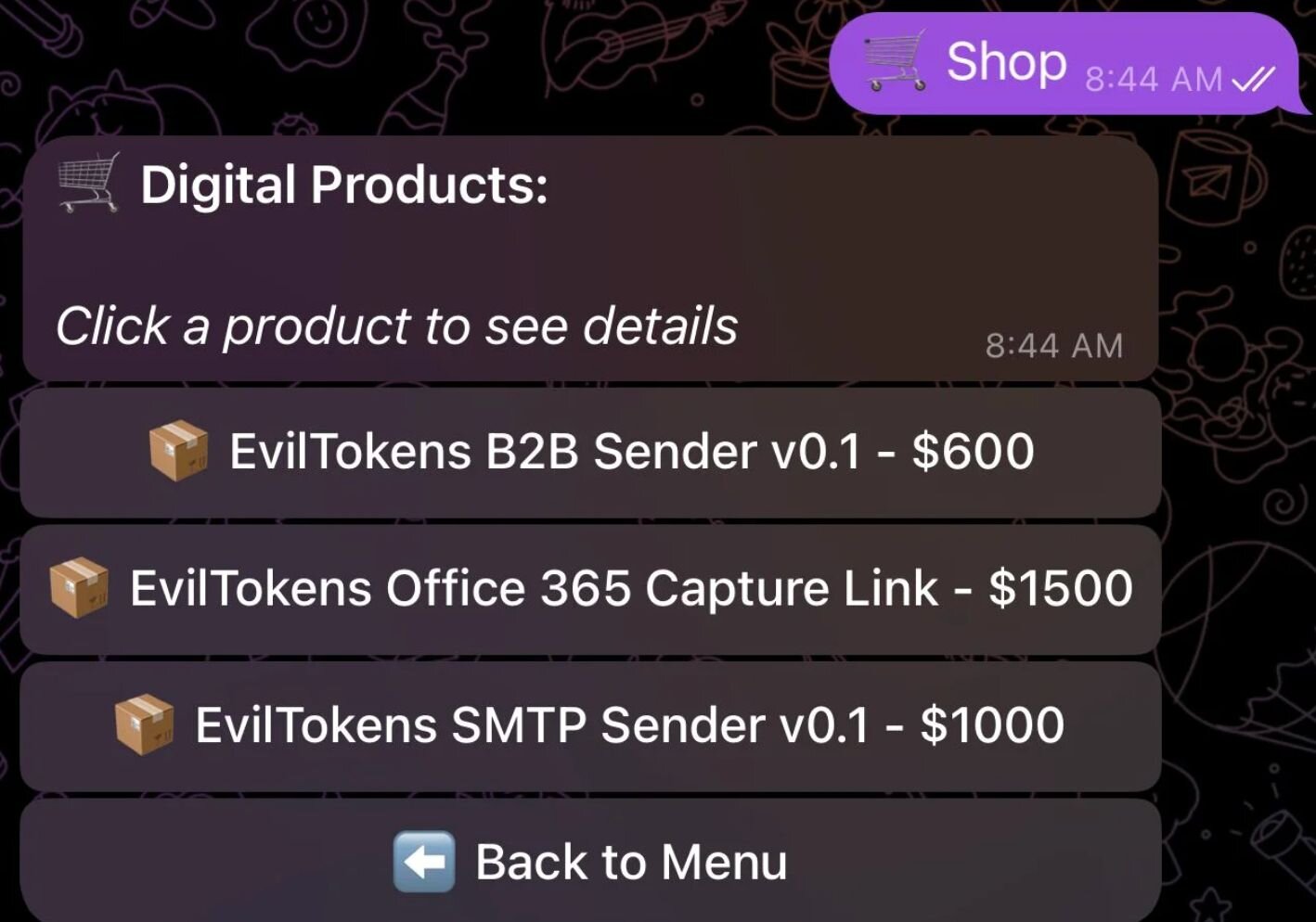 Figure 2: EvilTokens product store