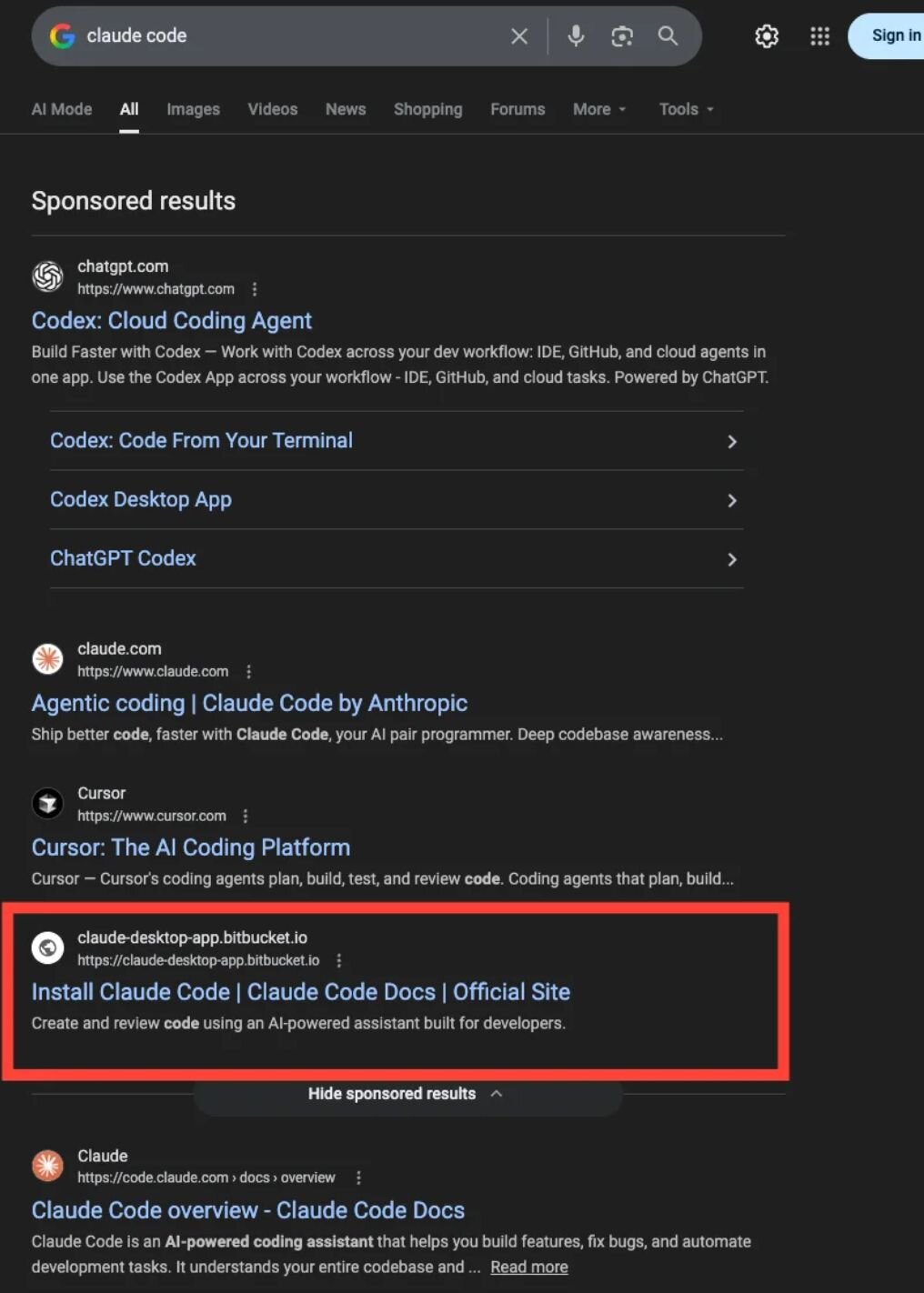In one case, a Huntress engineer searched for “Claude Code” and clicked a top sponsored result that appeared completely legitimate. Same naming, same positioning, nothing off at first glance.